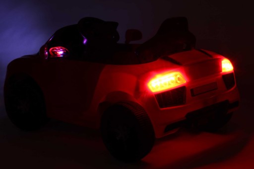 Silniki 2x45W, otwierane drzwi, funkcja bujania, bezzakłóceniowy pilot 2,4 G, pasy bezpieczeństwa to tylko niektóre elementy bogatego wyposażenia autka. Panel muzyczny z wgranymi melodyjkami, regulacją głośności zapewnią ogrom dodatkowych wrażeń w trakcie zabawy.