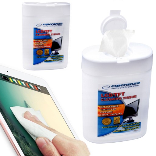 Wilgotne, antystatyczne chusteczki czyszczące firmy Esperanza.