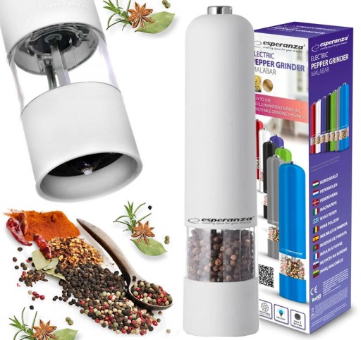 ELEKTRYCZNY MŁYNEK DO PIEPRZU SOLI PRZYPRAW BIAŁY