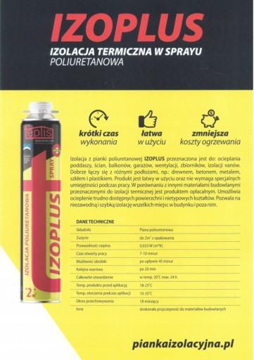 Pianka poliuretanowa do ociepleń IZOPLUS 750 ml