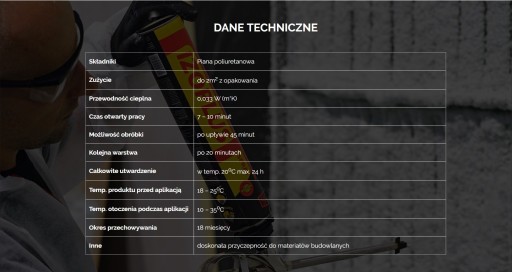 Zalecana temperatura produktu przed aplikacją powinna wynosić 18-25oC. Temperatura otoczenia podczas aplikacji powinna wynosić 10-35oC. Możliwa jest również aplikacja w niskich temperaturach do -15oC po wcześniejszym rozgrzaniu butelki i podłoża przeznaczonego do izolacji. Przed użyciem ostrożnie wstrząsnąć. W celu użycia przekręcić śrubę na górze i zamocować dyszę. Jedna warstwa nie powinna być grubsza niż 3 cm. Ewentualne dodatkowe warstwy nakładać po upływie 20 minut. Podczas pracy należy potrząsać butelką od czasu do czasu. Po nałożeniu produktu zaleca się zwilżenie warstwy izolacyjnej przy pomocy natrysku. Pozwoli to na uzyskanie najlepszych efektów po wyschnięciu produktu.
