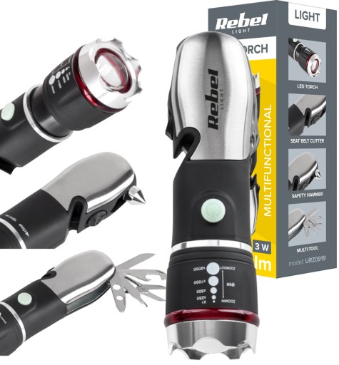 Latarka samochodowa wielofunkcyjna Rebel URZ0919 z nożem i młotkiem bezpieczeństwa