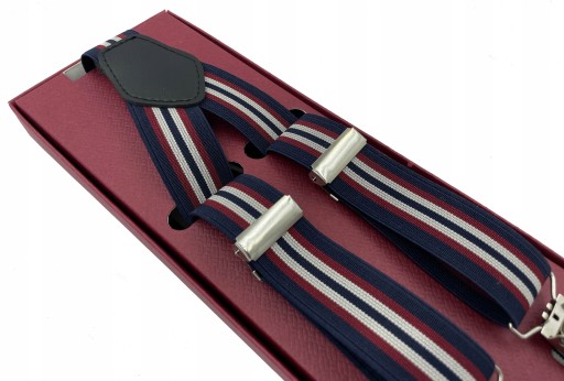 Granatowe bordowo białe żakardowe szelki do spodni