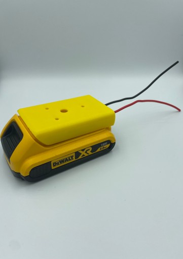 Adapter do baterii DeWalt XR 18v 54v idealnie sprawdzi się przy budowie własnych projektów. Dodatkowo posiada otwory mocujące pod wkręty lub pod śrubę M8. Adapter posiada wyprowadzone przewody 1,5mm2, które pozwolą na przeniesienie dużego prądu.