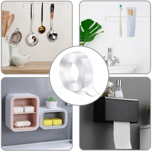 Taśma jest wytrzymała i nie pozostawia żadnych śladów na przedmiocie. Jest wielokrotnego użytku, wystarczy ją umyć i wysuszyć, aby odzyskała swoją lepkość.