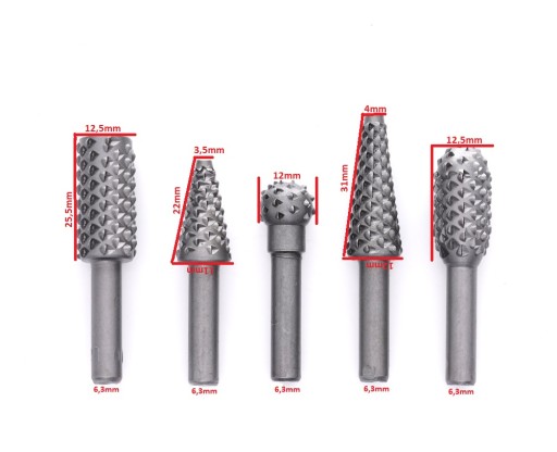 Zestaw frezów trzpieniowych 5 sztuk, trzpień 6,3 mm