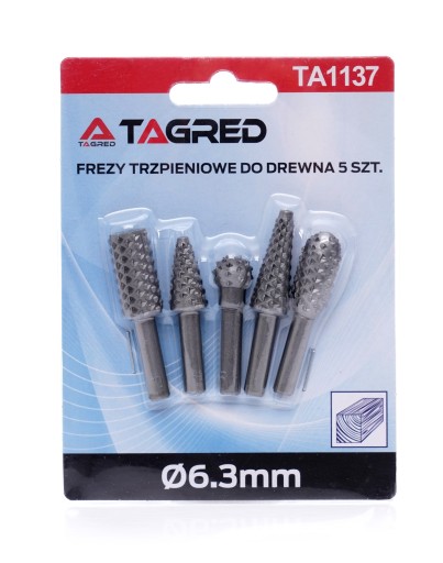 Zestaw pięciu tarników trzpieniowych przeznaczonych do podstawowej obróbki drewna, plastików oraz innych podobnych miękkich materiałów.