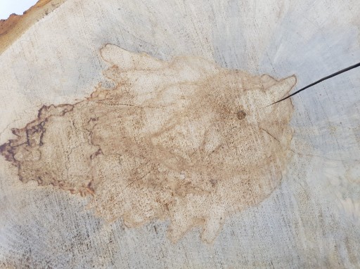 Zdjęcia przedstawione na aukcji prezentują stan plastra z lutego 2023. W procesie suszenia naturalną rzeczą są pęknięcia materiału powstałe w skutek oddawania wilgoci oraz powierzchowna zmiana barwy.