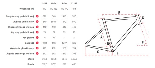 Tabelka po lewej wskazuje jak odpowiednio dobrać wielkość ramy roweru do wysokości ciała.