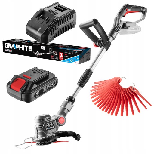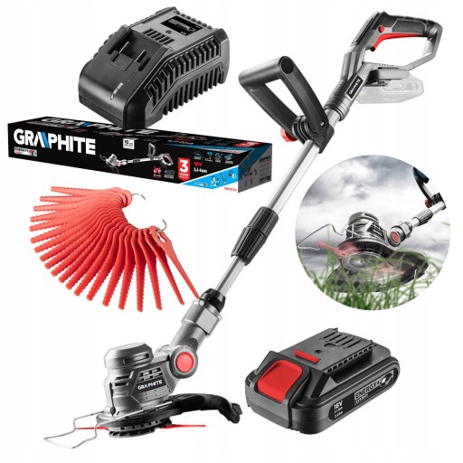Podkaszarka elektryczna GRAPHITE, współpracująca z akumulatorami 18V Li-Ion GRAPHITE Energy+ to poręczne i funkcjonalne urządzenie do koszenia miejsc, do których zwykła kosiarka nie jest wstanie dotrzeć, takich jak narożniki i krawędzie trawnika, powierzchnie wzdłuż murów lub pod ławkami ogrodowymi. Umożliwia szybkie i łatwe podkaszanie na niewielkich przestrzeniach - szerokość koszenia 254 mm. Wygodny uchwyt, lekka konstrukcja, a przede wszystkim zasilanie akumulatorowe zapewniają komfortową pracę w ogrodzie.