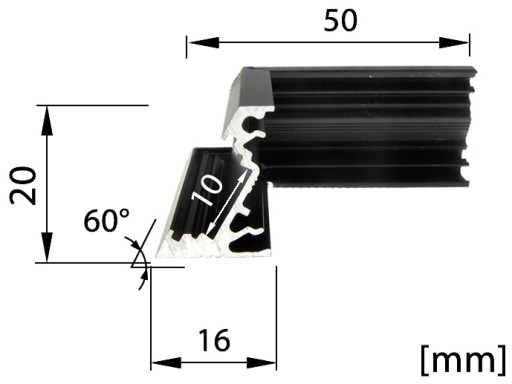PROFIL do LED MONTAŻOWY CORNER ŁĄCZNIK KĄTOWY CZARNY ZEWNĘTRZNY 60°
