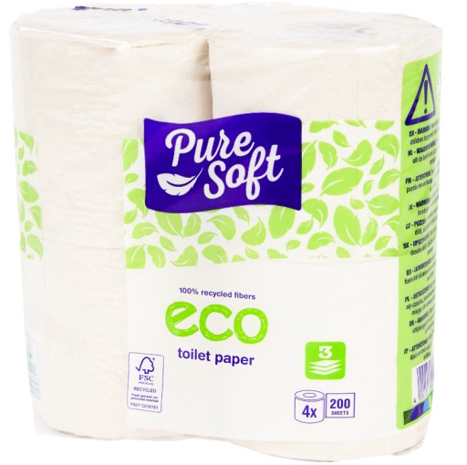 Miękki, ale mocny i wytrzymały papier toaletowy, wykonany z papieru z recyklingu.