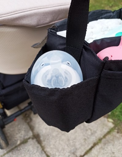 ✅Organizer posiada aż 4 dodatkowe kieszenie: po jednej z przodu i z tyłu oraz dwie boczne. Butelka, pieluszki czy ulubiona zabawka - dla każdej rzeczy znajdzie się sporo miejsca.