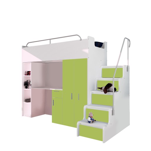 Łóżko jest w pełni konfigurowalne montażowo. Dzięki odpowiednim rozwiązaniom technicznym przed rozpoczęciem montażu można wybrać wersję mebla (to czy schody mają znajdować się po lewej, czy też po prawej stronie stronie łóżka). Schodki mogą być również ustawione równolegle lub prostopadle do korpusu łóżka.