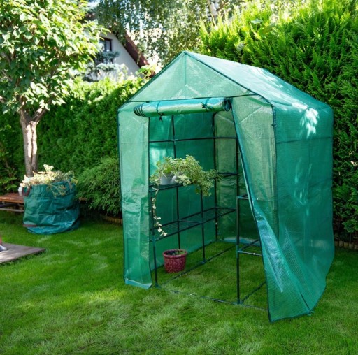 Charakteryzuje się wymiarami 143 x 143 x 195 cm. Jest łatwa do zamontowania. Zamyka się ją na praktyczny zamek błyskawiczny oraz dodatkowo można podwinąć front szklarni dla łatwiejszej obsługi roślin. Otwór frontowy ma wymiary 37 x 70 cm.