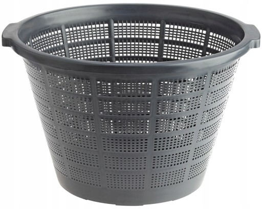 Kosz na rośliny wykonany z odpornego na gnicie, mocnego tworzywa, odpowiedni dla roślin wodnych na brzegach i w płytkiej wodzie.