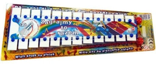 Wewnątrz opakowania znajdują się nuty dwóch znanych piosenek - "Wlazł kotek na płotek" i "Mało nas do pieczenia chleba".