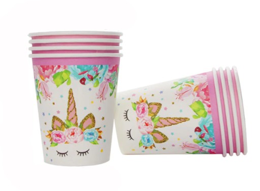 Papierowe kubeczki urodzinowe z zestawu Jednorożec - 6 sztuk