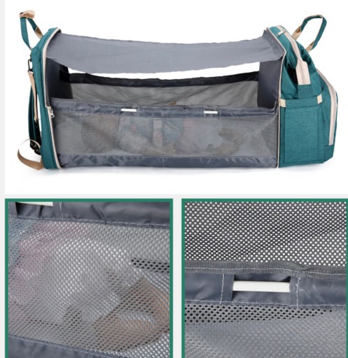 - Plecak po rozłożeniu może służyć jako łóżeczko turystyczne, kojec.