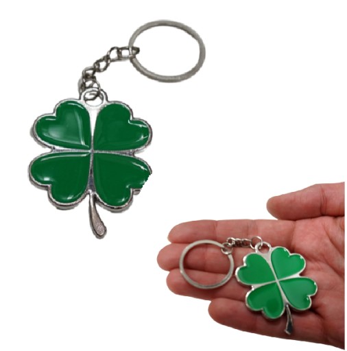 Brelok do kluczy w kształcie czterolistnej koniczynki, idealny dla wszystkich, którzy lubią mieć zawsze przy sobie gadżet na odstraszenie nieszczęśliwych zdarzeń. Jest małych rozmiarów, pasuje jako prezent na różne okazje.
