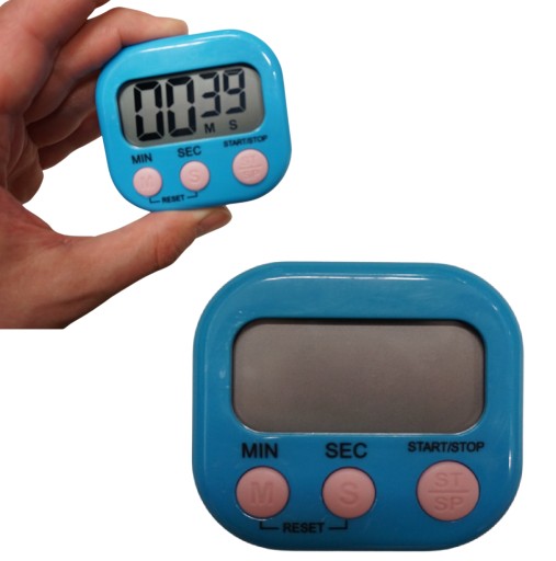 Czasomierz do kuchni z LCD posiada bardzo wygodną, regulowaną podstawkę, dzięki której można go bez problemu ustawić w widocznym miejscu na blacie lub półce kuchennej. Timer kuchenny z podstawką posiada ponadto bardzo przydatny, wbudowany magnes. Sprawdzi się w przypadku, kiedy nie mamy możliwości postawienia urządzenia (np. brak wystarczającej ilości miejsca lub ryzyko zalania/zanieczyszczenia) – można wówczas bez problemu powiesić je na każdej płaskiej, metalowej powierzchni – np. na drzwiach lodówki. Minutnik kuchenny z magnesem posiada bardzo dobrze widoczny, duży ekran LCD oraz trzy przyciski, które służą do ustawiania minut, ustawiania sekund, a także uruchomienia/zatrzymania odliczania. Naciśnięcie dwóch przycisków do ustawiania minut i sekund jednocześnie włącza funkcję reset, która zeruje licznik czasomierza do kuchni z LCD.