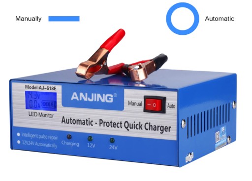Nadaje się zarówno do akumulatorów 12 V, jak i 24 V, działa z SLA, WET, MF, FLOODED, GEL, VRLA, AGM, EFB, co oznacza, że może być stosowany do akumulatorów w samochodach, motocyklach, łodziach, kosiarkach, pojazdach rolniczych i innych.