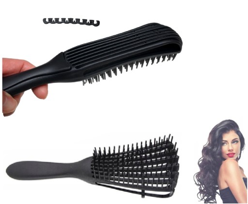 Szczotka została wykonana z wytrzymałego elastycznego tworzywa, dzięki któremu delikatnie sunie po włosach bezboleśnie pozbywając się wszelkich splątań i kołtunów. Szczotka nadaję się do wszystkich rodzajów włosów ale dzięki swojej unikatowej budowie w szczególności polecamy ją do włosów kręconych.