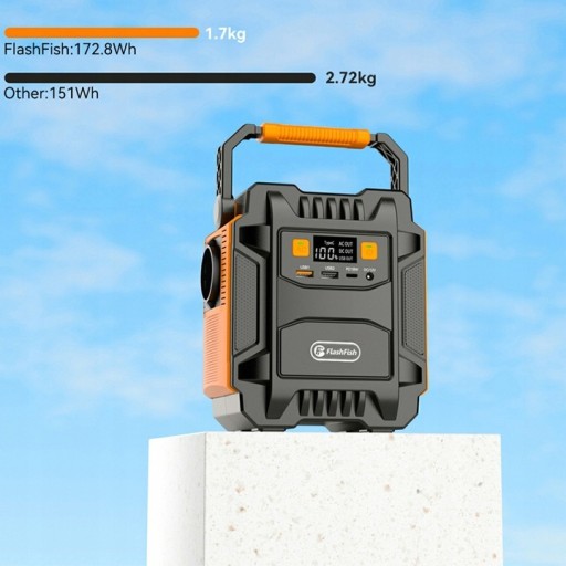 Wyposażony w akumulator litowo-jonowy 172,8 Wh/48000 mAh i ważący zaledwie 1.7kg, Flashfish A201 jest mocny i kompaktowy, dzięki czemu można go łatwo zabrać ze sobą wszędzie.
