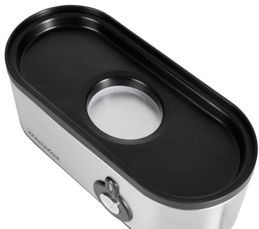 Wyposażony w dźwięk informujący o zakończeniu pracy urządzenia oraz lampkę kontrolną. W zestawie miarka na wodę z igłą do nakłuwania jajek.
