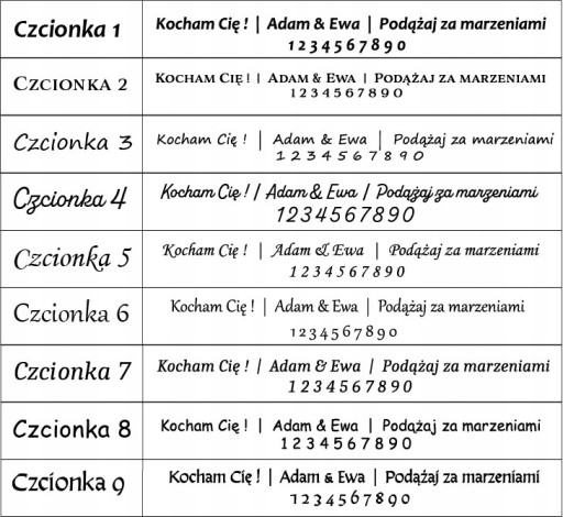 - Numer czcionki