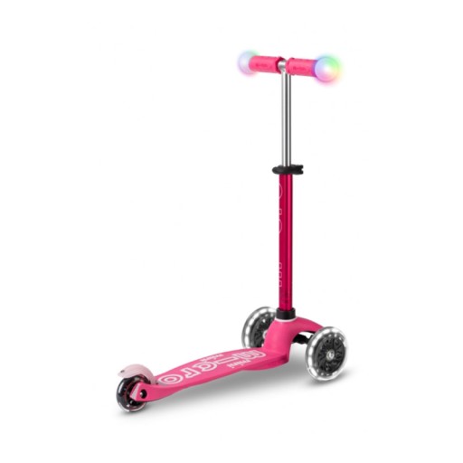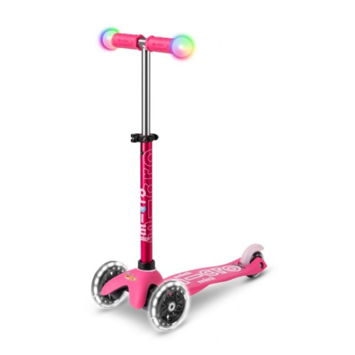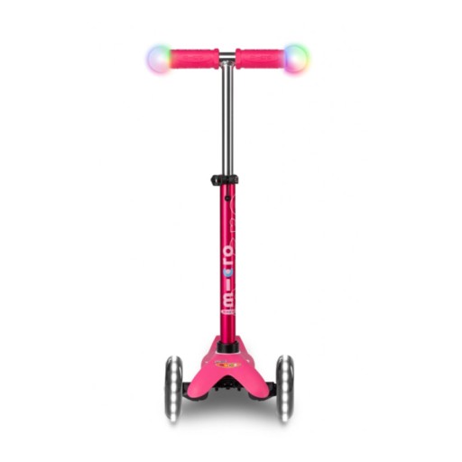Najnowsza wersja hulajnogi Mini Micro Deluxe wyposażona została w świecąca przednie kółka, które dbają o dobrą widoczność dziecka po zmroku. Diody LED w kółkach dostarczają też niezwykłych efektów wizualnych, dzięki czemu jeszcze bardziej uatrakcyjniają jazdę na hulajnodze. Koła hulajnogi świecą się podczas jazdy na niej i automatycznie gasną, gdy hulajnoga się zatrzyma. Diody LED zasilane są za pomocą indukcji, dzięki czemu nie ma potrzeby wymieniać baterii, ponieważ energii diodom dostarczają kręcące się kółka hulajnogi.