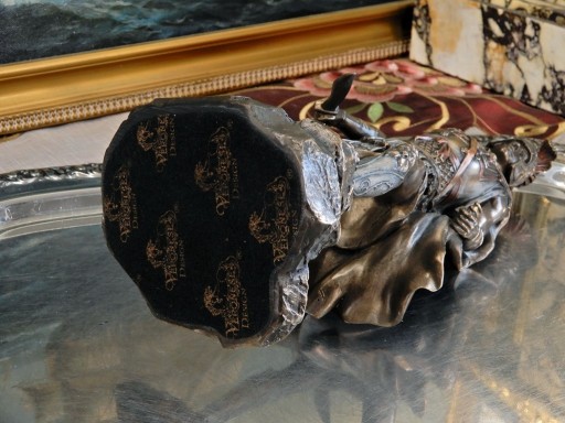 Przedmiot może stać się atrakcyjniejszy poprzez umieszczenie dyskretnej dedykacji grawerowanej na spodzie figurki. Przytwierdzamy 4 krążki z filcu a między nimi umieszczamy złotą płytkę z laminatu grawerskiego z Twoim tekstem lub grafiką.