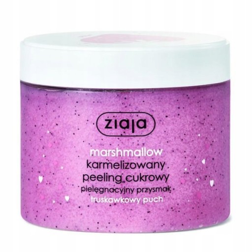 Marshmallow karmelizowany peeling cukrowy pielęgnacyjny przysmak truskawkowy puch. Karmelizowany peeling o kultowym zapachu pianek marshmallow. Wygładza skórę naturalnymi kryształami cukru. Aromatyczna pielęgnacja pozostawia Twoją skórę miękką i smakowicie pachnącą.