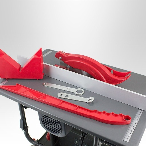 Wyposażona w bardzo wygodny i ergonomiczny blat o wymiarach 500x335mm oraz osłonę tarczy zapewnia wysoki komfort i bezpieczeństwo pracy. Dodatkowo pilarka wyposażona jest przyłącze do odsysania pyłu (35 mm). Pilarka umożliwia cięcie pod kątem 45°.