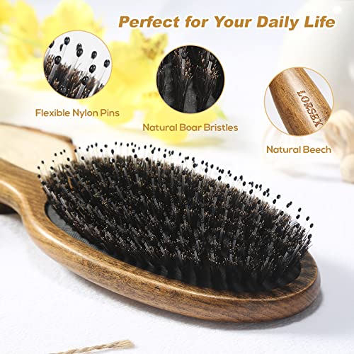 LORSEX Drewniana szczotka do włosów z włosiem dzika i węzeł wygładzający masaż grzebień do włosów poduszka powietrzna szczotka do włosów w buku (kawowy brąz)