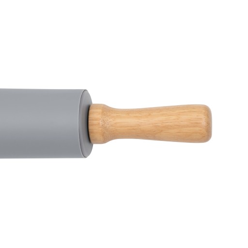 Silikonowy wałek posiada drewniane, antypoślizgowe uchwyty, dzięki czemu idealnie dopasują się do dłoni.