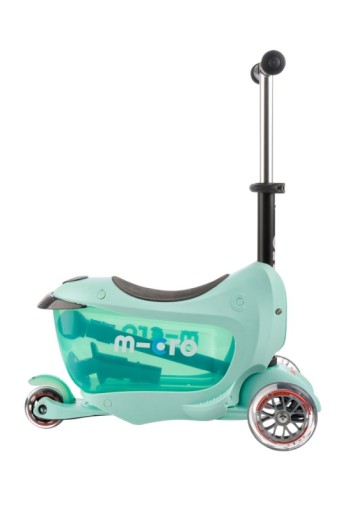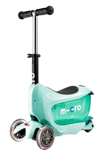 Mini2Go Deluxe Plus renomowanej szwajcarskiej firmy Micro to najlepszy towarzysz dzieci od 1,5 do 5 roku życia. Ta sprytna zabawka dostosowuje się do potrzeb dziecka. Dla maluchów jest jeździkiem z drążkiem do pchania, a dla starszych dzieci hulajnogą. Mini2Go posiada szufladę, do której można włożyć ulubione zabawki i którą można wyjąć do zabawy. Szufladkę można też zdemontować i zostawić w domu a Mini2Go używać tylko jako jeździka. Mini2Go w wersji Plus posiada w zestawie drążek, dzięki któremu można dyskretnie pomóc dziecku pchając hulajnogę i sterować nią. Gdy dziecko jest już większe Mini2go można bez trudu zamienić w klasyczną hulajnogę Mini Micro. Wersja Deluxe to wytrzymalszy podest, większy zakres regulacji kierownicy i dodatkowe kolory.