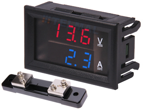 Uniwersalny miernik panelowy, cyfrowego woltomierza i amperomierza 0-100V, 50A. Wygodny sposób na wykonanie własnego miernika w swoim urządzeniu. Wersja z czerwonym voltomierzem i niebieskim amperomierzem.