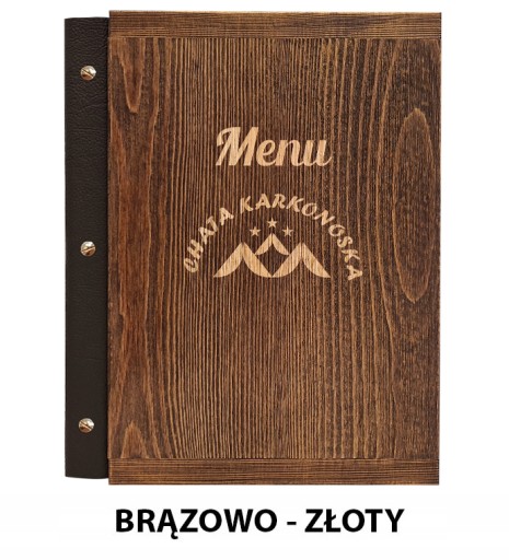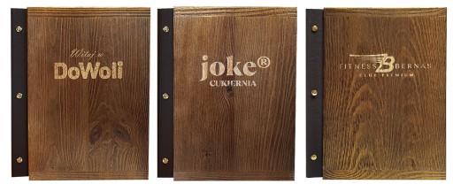 OKŁADKA MENU A4 DREWNIANA ZE SKÓRĄ - 2 KOLORY DO WYBORU