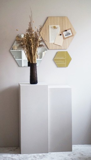 Oryginalna - szklana suchościeralna tablica magnetyczna heksagonalna renomowanego duńskiego producenta firmy NAGA. Praktyczna w biurze, restauracji lub domu np. do sporządzania podręcznych notatek, a jednocześnie jest doskonałą i wyjątkową ozdobą w pomieszczeniu!