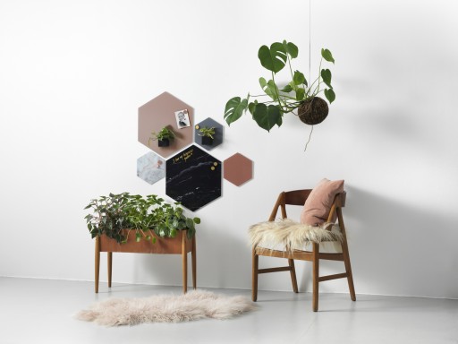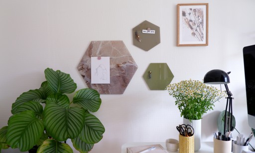 Szklana tablica magnetyczna suchościeralna heksagonalna - różana 21x24 cm duńskiej firmy NAGA