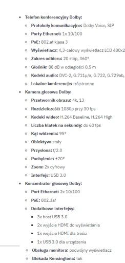 Zapewnia niesamowita jakość dźwięku z zasiegiem ok 6m na okrągło. w połączeniu z całym zestawem Dolby voice room oferuje przestrzenny dźwięk zapewniając niezwykle realistyczne wrażenia podczas konferencji