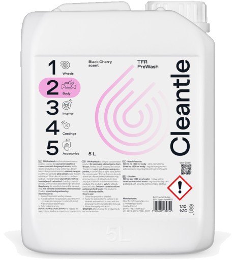 TFR Prewash firmy Cleantle to produkt w koncentracie przeznaczony do mycia wstępnego pojazdów.