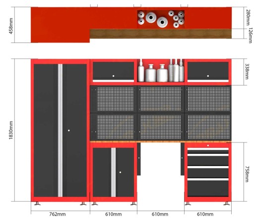 МЕБЕЛЬ ДЛЯ МАСТЕРСКОЙ КОМПЛЕКТ МЕБЕЛИ ИЗ 13 ПРЕДМЕТОВ ШКАФ-ПОЛКА