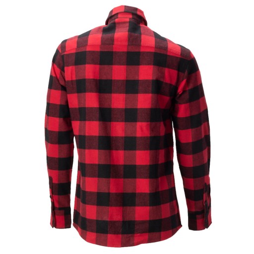 Koszula flanelowa marki Bluewear to ponadczasowy i wygodny strój na różne okazje. Wzór w kratkę i paski w kolorach czerwonym i czarnym.