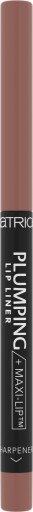 PLUMPING LIP LINER marki Catrice. Automatyczna konturówka do ust. Posiada wyjątkowo trwałą i aksamitną formułę, która sprawia, iż aplikacja jest bardzo prosta i przyjemna. Pomaga precyzyjnie zdefiniować kształt warg, tak by pomadka bądź błyszczyk nie wypłynęły poza jego granice. Jednocześnie kosmetyk zawiera olejek z mięty pieprzowej, sprawiający, że po zaaplikowaniu na całe wargi stają się one bardziej pełniejsze i przyjemnie nawilżone. Dodatkowo kredka jest odporna na wodę oraz rozmazywanie się, co znacznie podnosi komfort pracy. Jest w 100% wegańska.