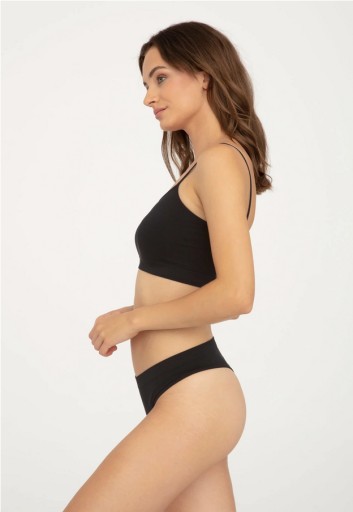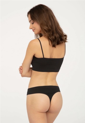 Bezszwowe majtki typu string (nie posiadają szwów bocznych) z higienicznym, antybakteryjnym klinem. Dzięki zastosowaniu przędzy z poliamidu połączonego z elastanem idealnie przylegają do ciała.