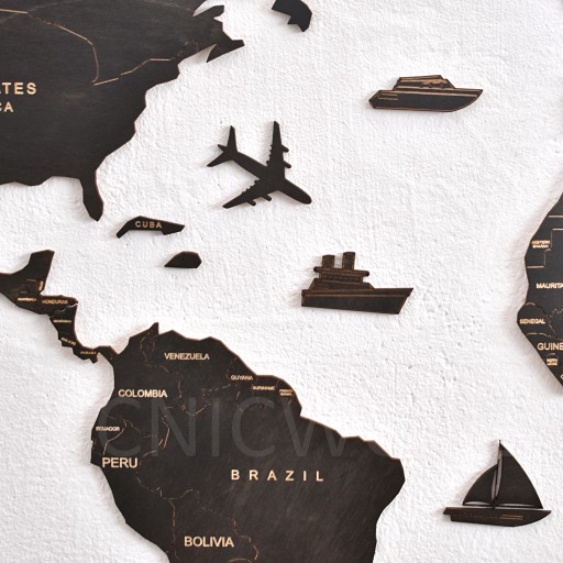 Przykłady naszych map świata we wnętrzu w kolorze Czarny.