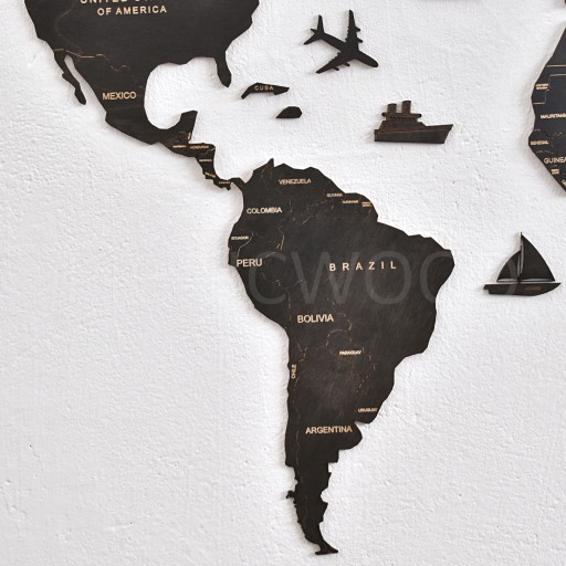 ✔️ Drewniana Mapa Świata w kolorze Czarny (120 cm szerokość x 70 cm wysokość)