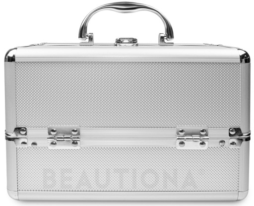 KUFEREK KOSMETYCZNY ROZMIAR S, SREBRNY Z 4 ROZSUWANYMI PÓŁKAMI
